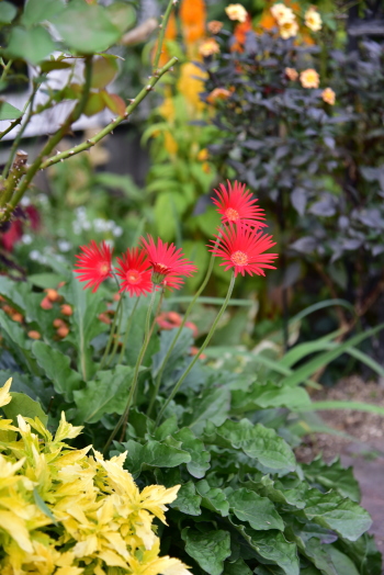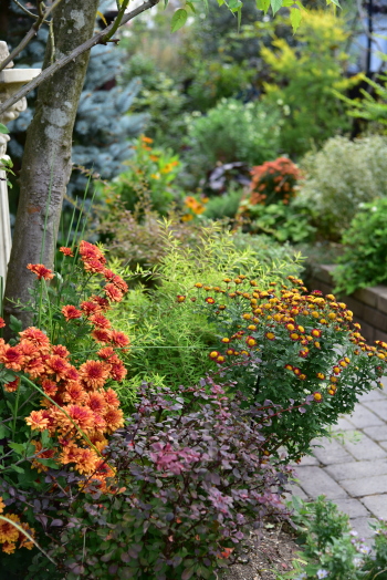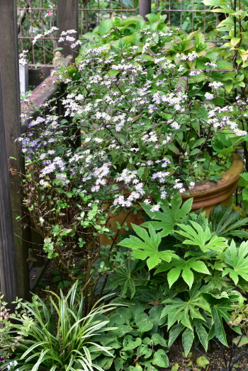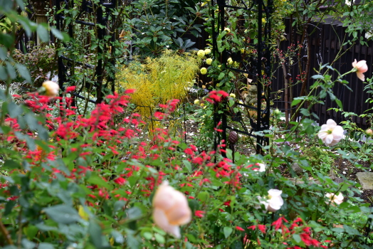 きれいに黄色く紅葉しているのは細葉チョウジソウ(アムソニア フブリヒティ)