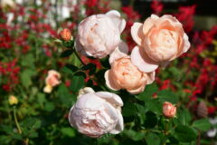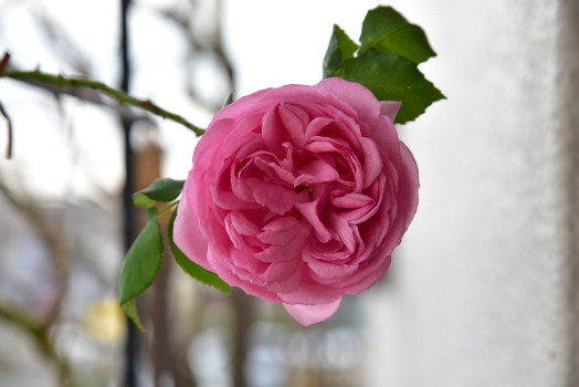ツルバラは誘引して、ブッシュのバラは葉をとり仮剪定を済ませました
