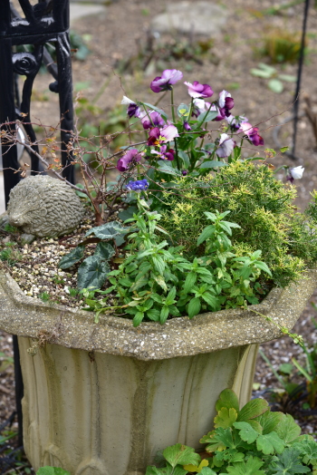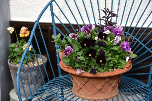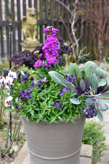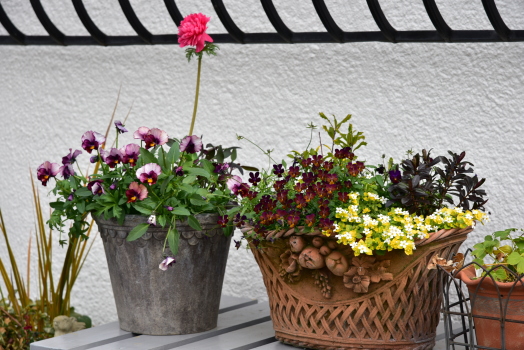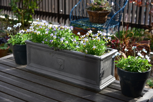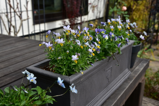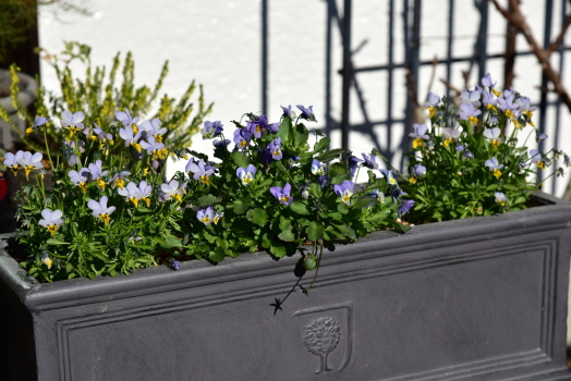RHSのプランターにはemsさんのミニビオラ、中にはポリクロマも入ってます