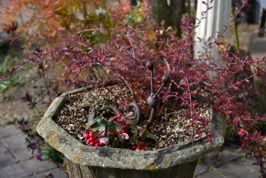 ウンナンイソサンショウの紅葉と大実ヤブコウジです