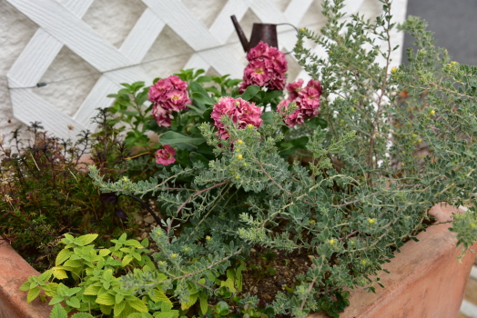 脇の鉢は主人にオーダーして素焼き鉢をペイントしてもらいました