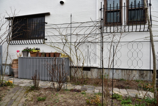 来客用駐車場から見た玄関の壁です