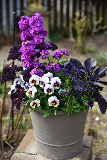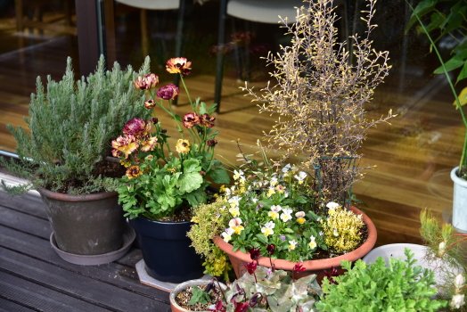 寒い中、きれいに咲いてくれる寄せ植え