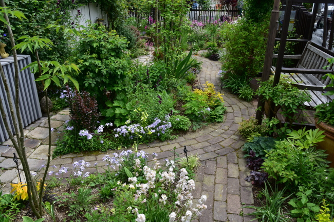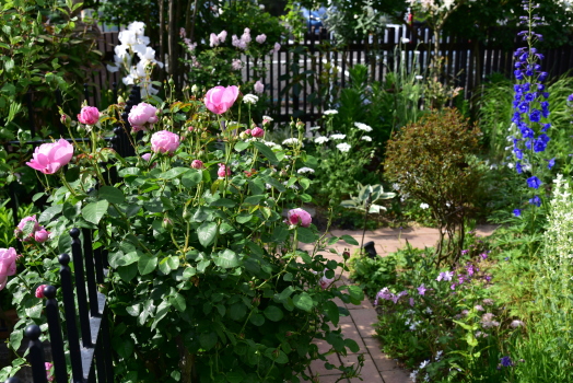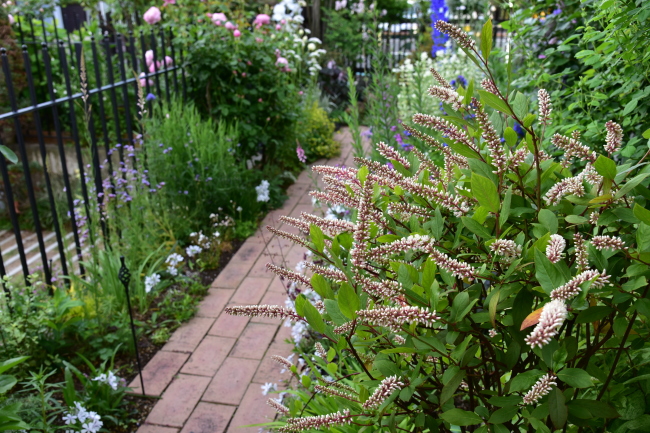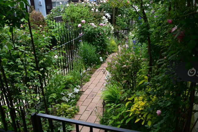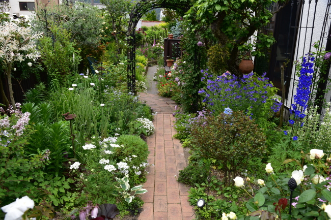 西の小道の一番奥のキッチンガーデンから見たパーゴラ前です