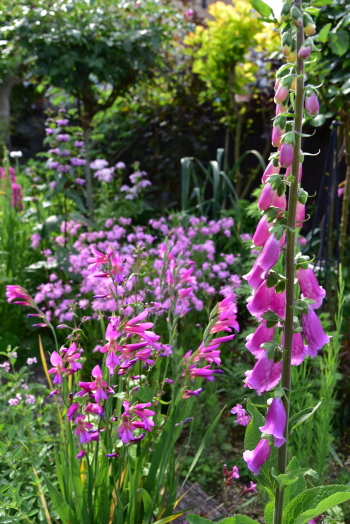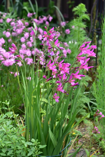 グラジオラス ビザンティヌスにこぼれ種からのジギタリス