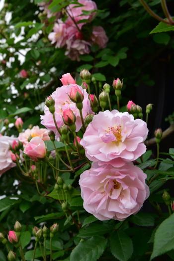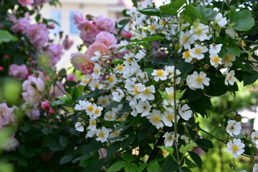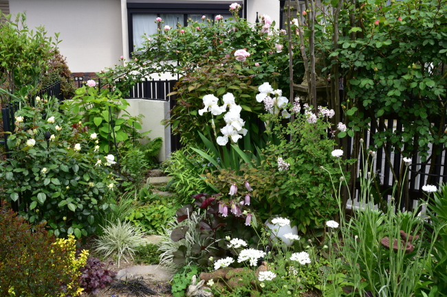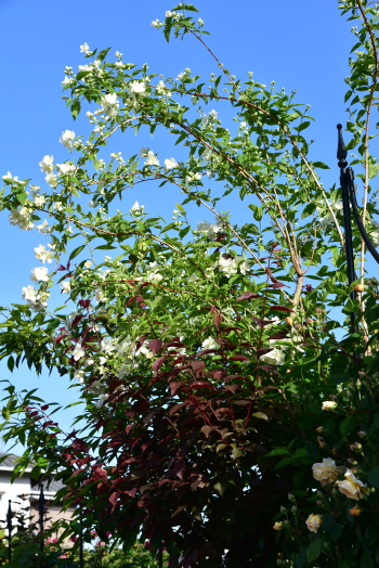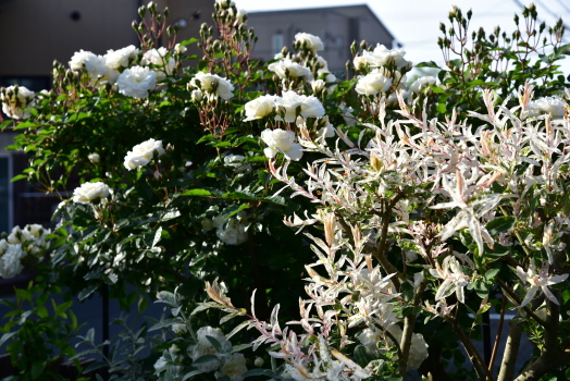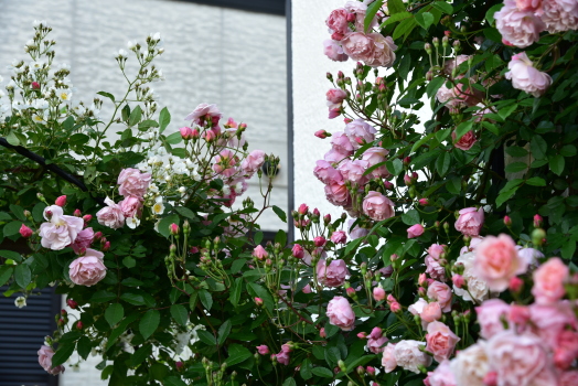 例年咲き終わるころにバラが咲き始めるのですが今年は同時でした