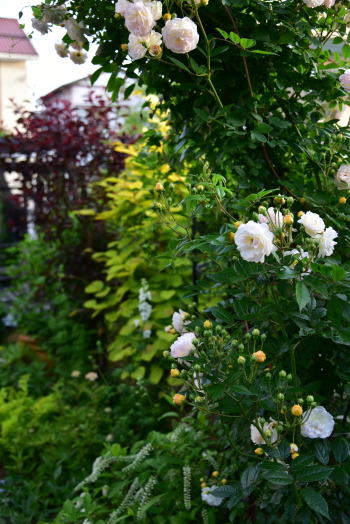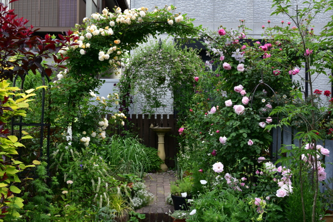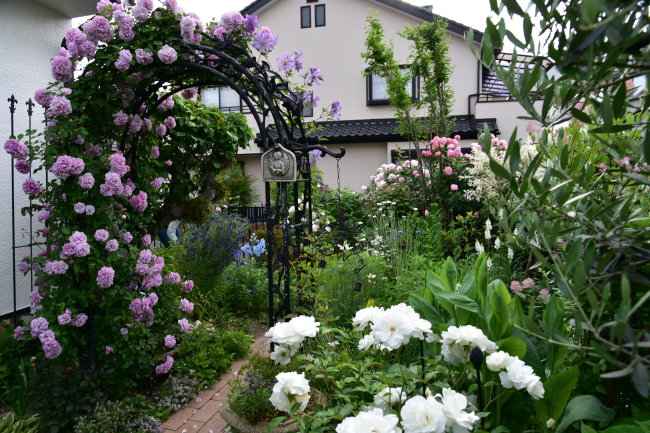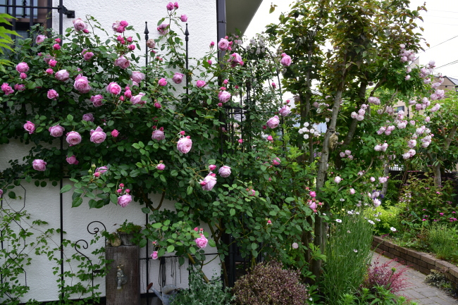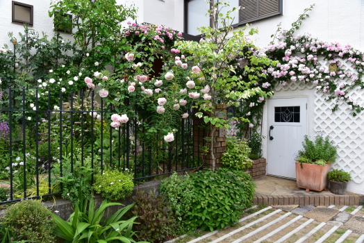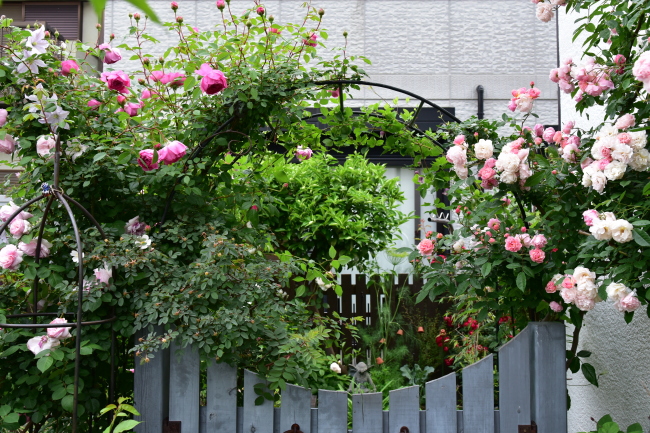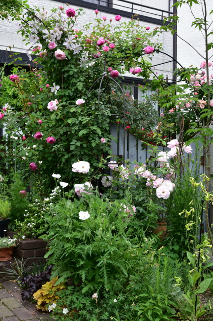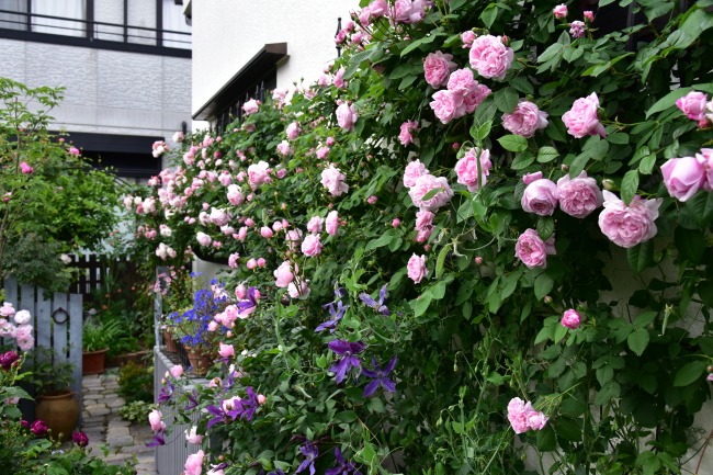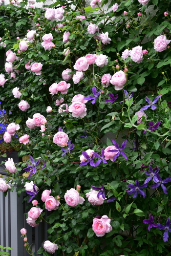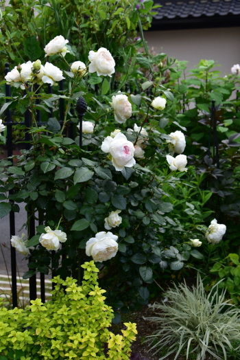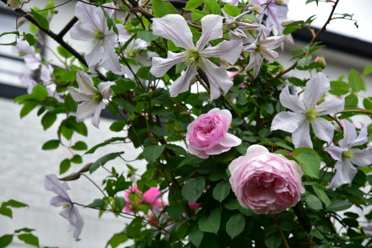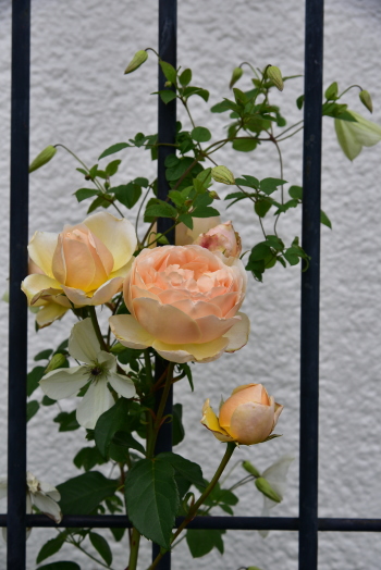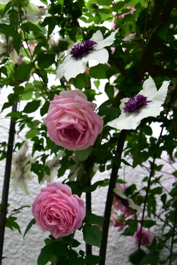 ER オリビアローズオースチン、 クレマチス ホワイトプリンスチャールズ‥