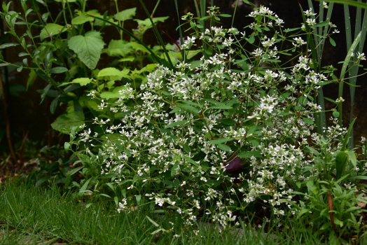 雨が上がるたびに、庭に出ると、白絹病の植物を見つけます