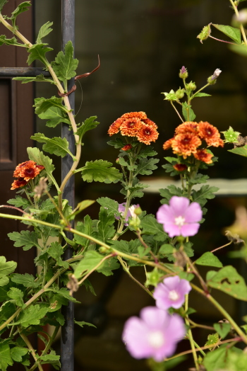秋色と菊とバラ