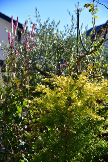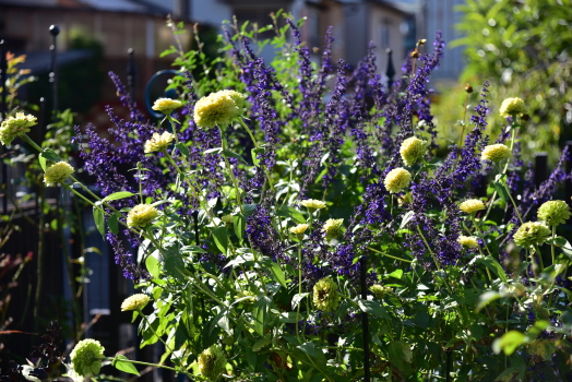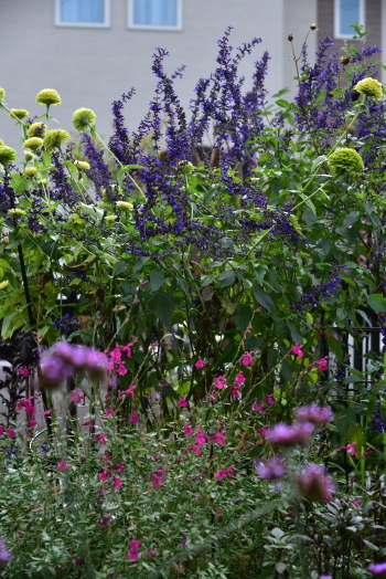 ジニア と ラベンダーセージが長く咲いている