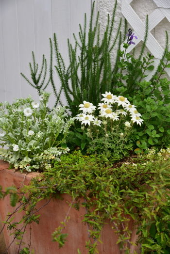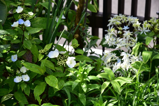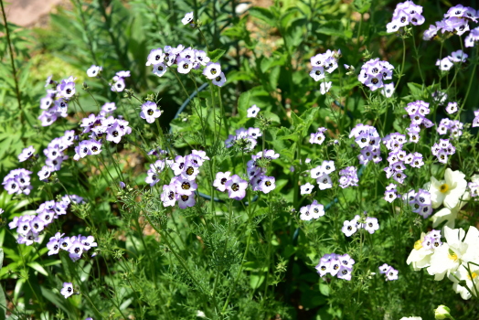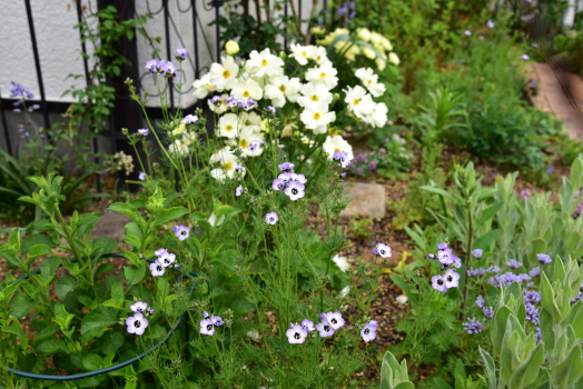 セラゴ、 フランネルフラワーリトルエンジェル、 サルビアソークール パープルブルー、 ネモフィラプラチナスノー、 ウンナンイソサンショウ ‥