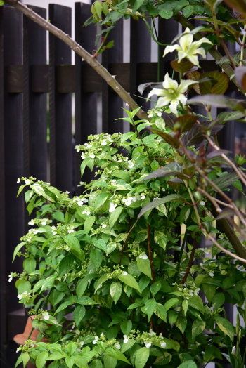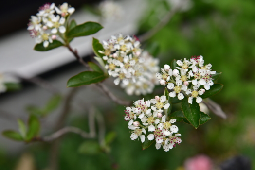 赤い実のオトコヨウゾメは花に少し色が入るけれど黄実は真っ白な花がきれいです