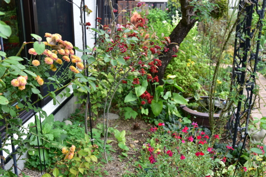 なかなか秋らしい気温にならないので庭の葉は紅葉せずに茶色になるものが多いです