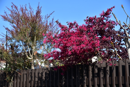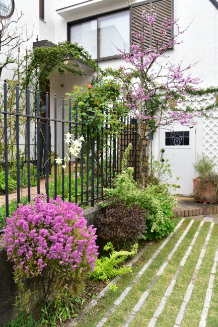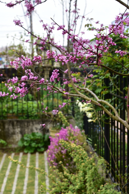 エリカ ジャミソニス と ハナズオウ シルバークラウドの花の開花期がぴったり合いました