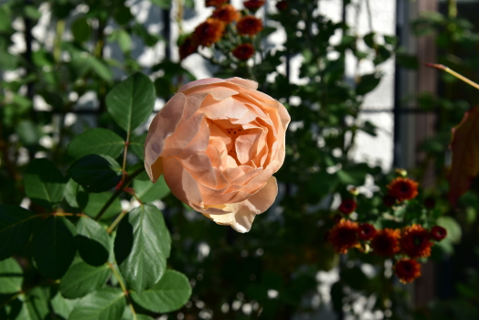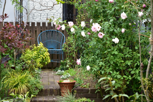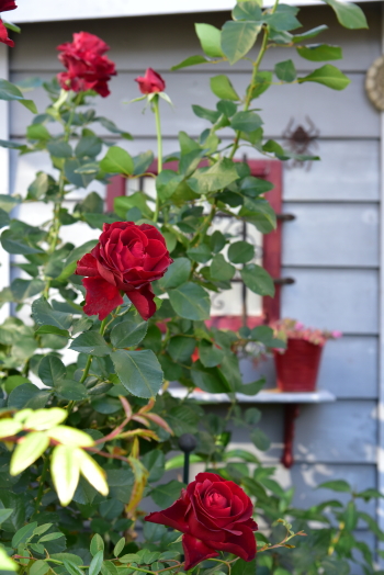 直射の日光のところはこんなに鮮やか、庭側は落ち着いた色