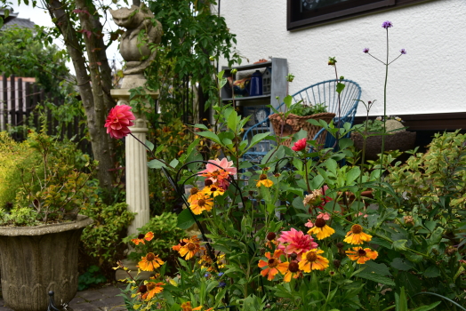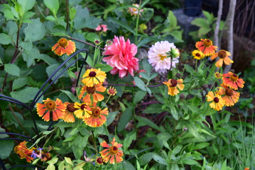 ダリア ピーチマカロン、 ヘレニウム マーディグラス