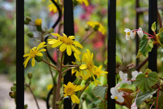 シュウカイドウ白花 & ツワブキ 浮雲の花