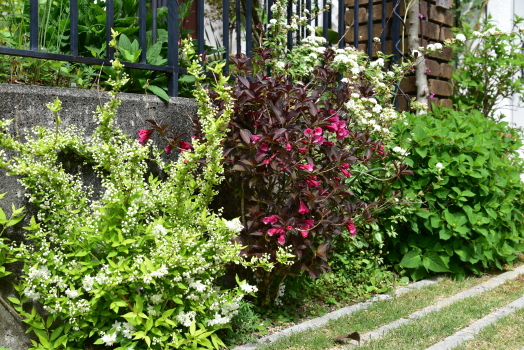ヒメウツギ ライムシャンデリア、銅葉オオベニウツギ ワイン&ローズ