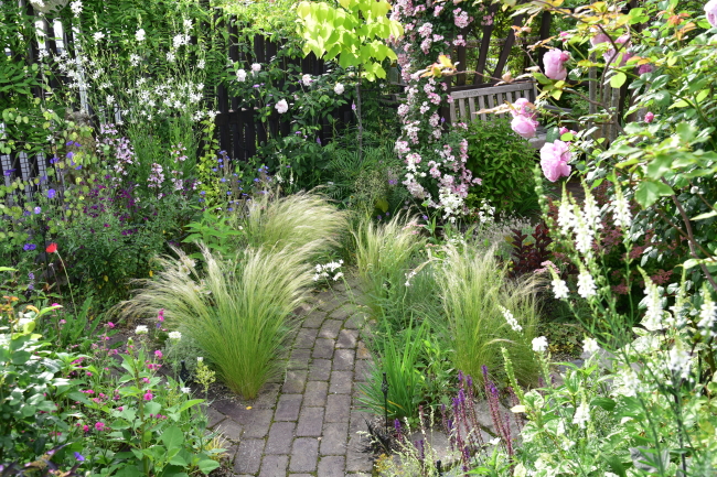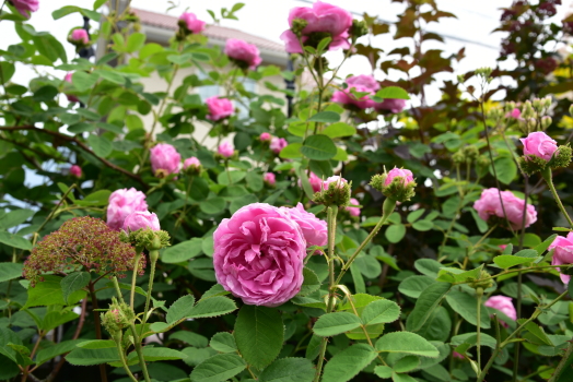 29日の朝から一日は遅咲きバラの剪定、植物の整理、支柱のし直しなど作業に追われました