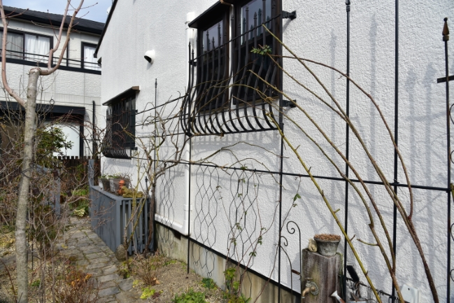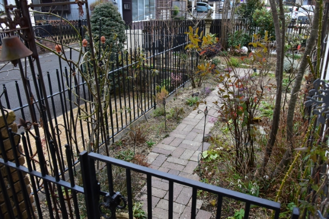 バラの誘引と剪定を終えて、一年で一番すっきりとした庭です