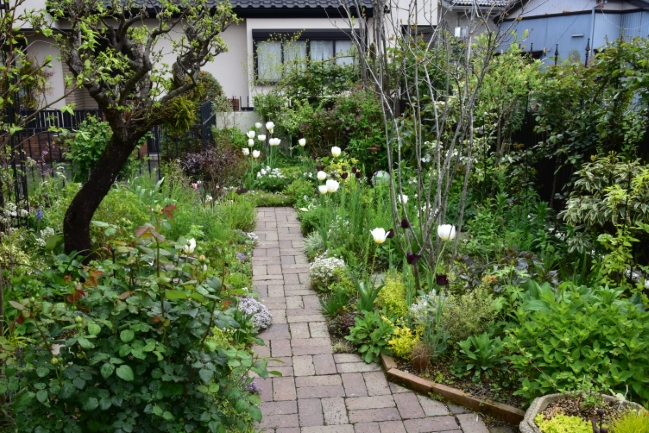 不安定で気温も低め、桜の花が長持ちしたように、庭のチューリップも長く楽しめました