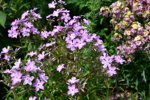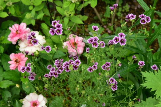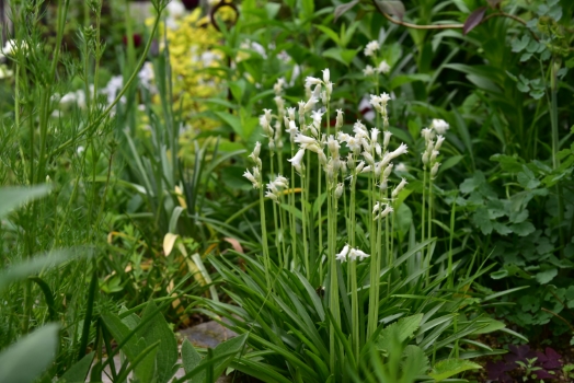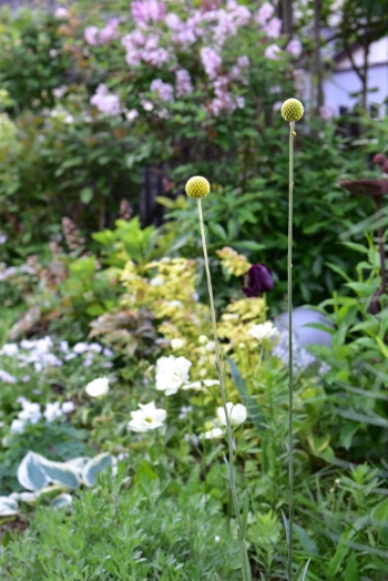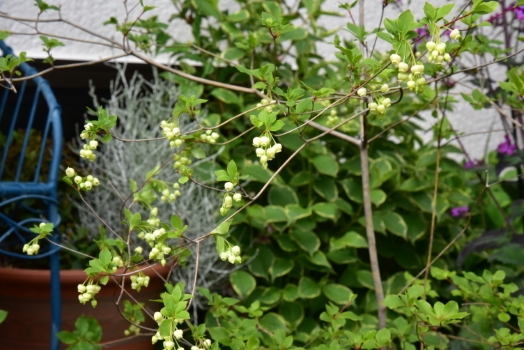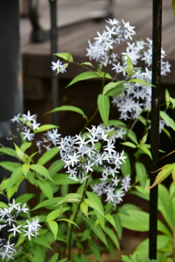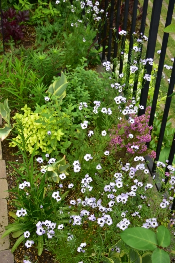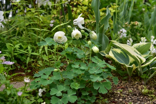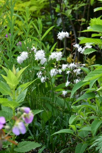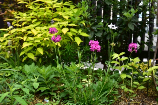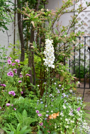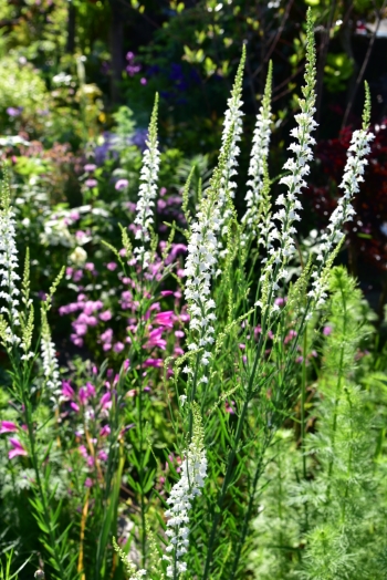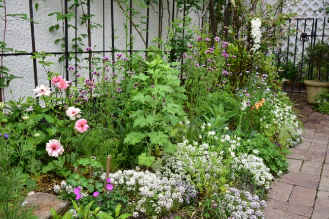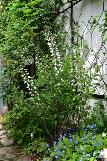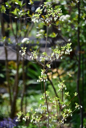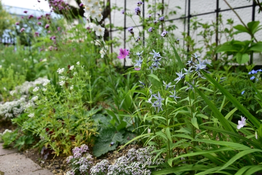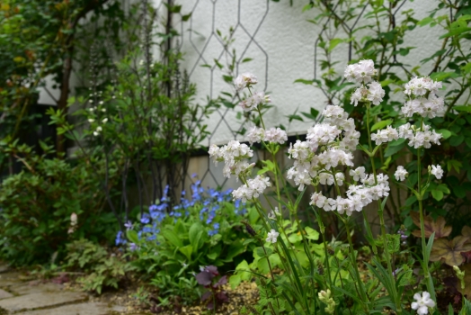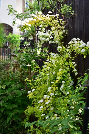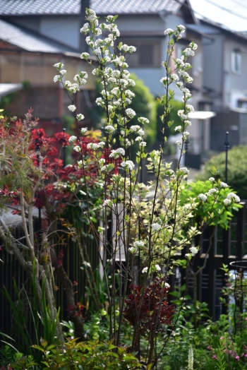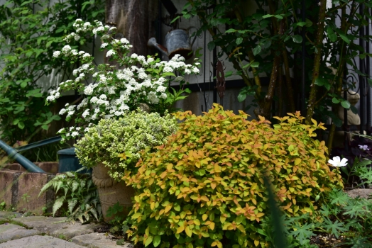 白い花は岩笠、 手前はスピレア ゼンスピリットキャラメル