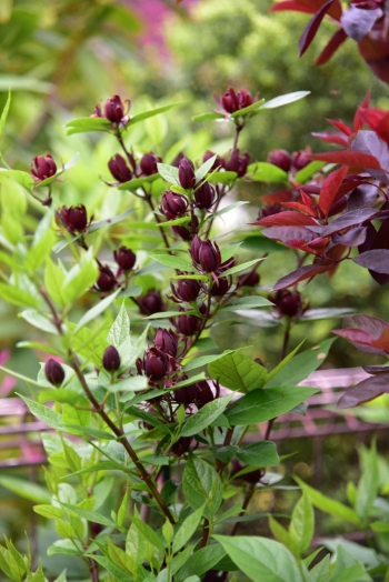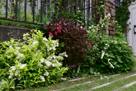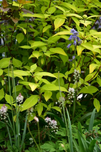 銅葉オオベニウツギ ワインアンドローズ、 ヒメウツギ ライム シャンデリア、 コデマリピンクアイス‥