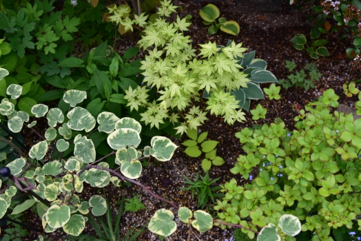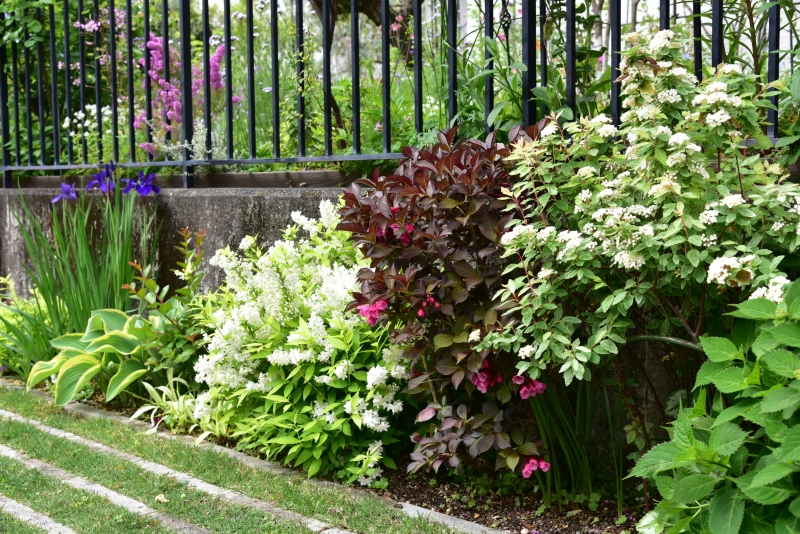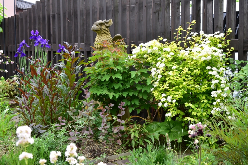 魁あやめ、 ホスタ 寒河江、 ヒメウツギ ライムシャンデリア、