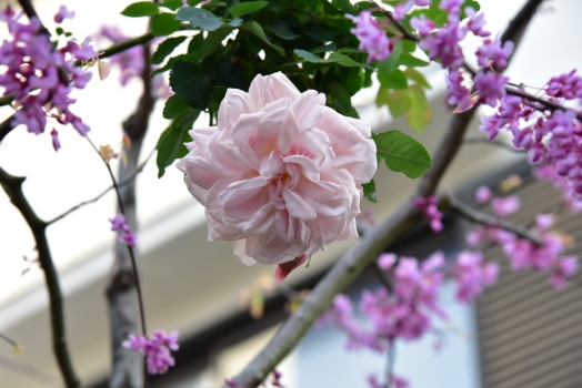 アメリカハナズオウの木の上でERシンベリンが咲き始めました